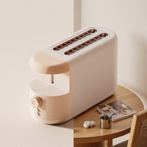 Through original – image lighting and home – scene composite, the retoucher highlights the toaster’s minimalist
