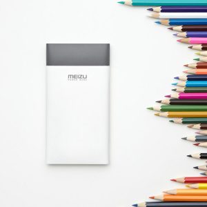 The Meizu power bank creates a stylish appearance with a simple white – and – gray