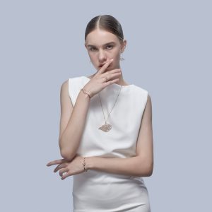 When shooting this set of jewelry, soft diffused lighting is used to highlight the texture, and