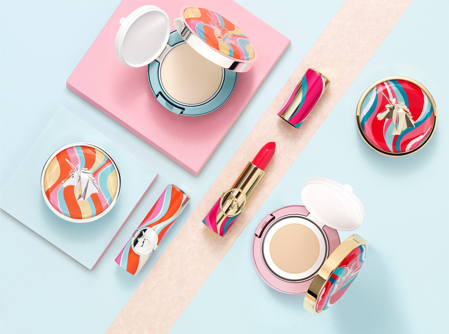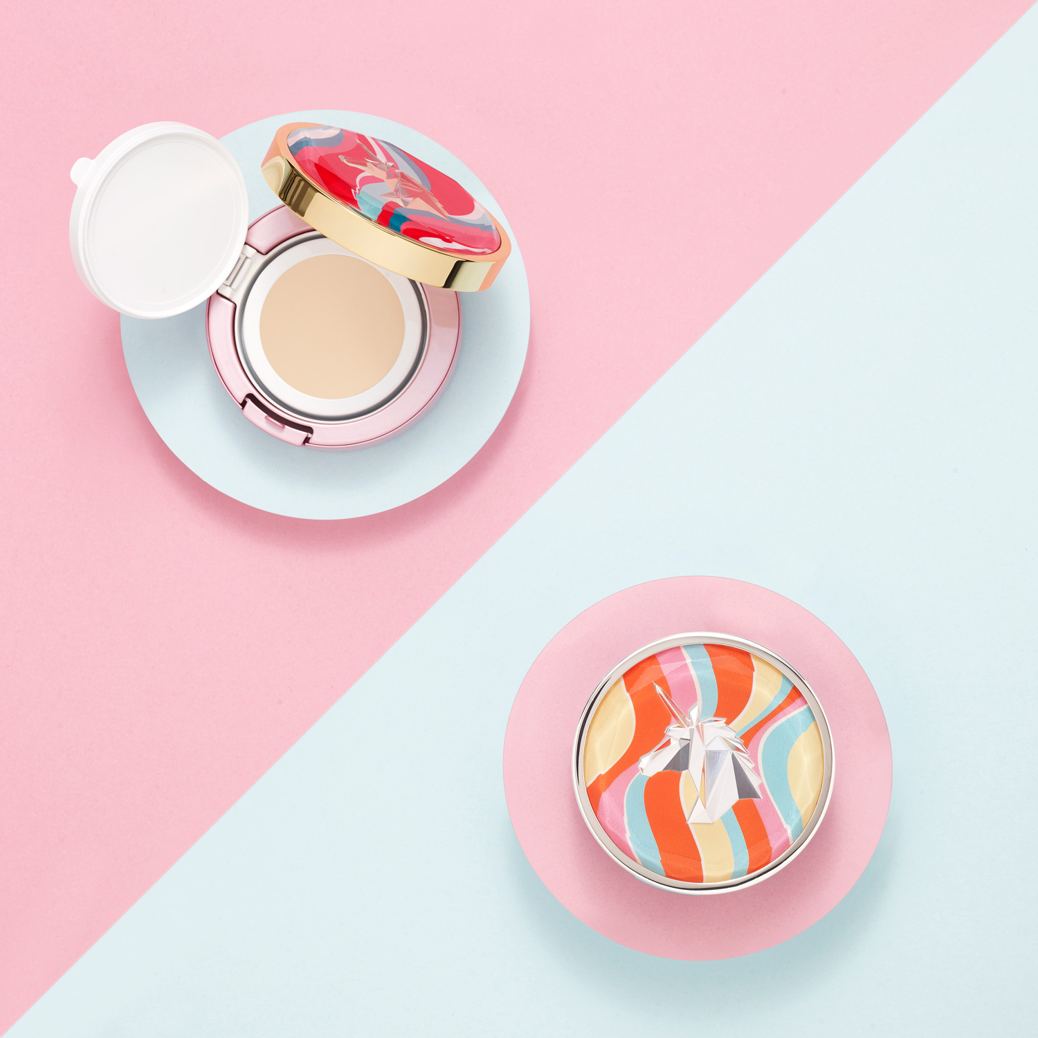 By showcasing a diverse range of products—including gradient and color-blocked lipstick tubes alongside cushion foundations—our work aligns perfectly with the “makeup set visual production” keyword. Our mastery of soft-light diffusion highlights the luminous glow and premium texture of the cosmetics, making these visuals ideal for reaching target audiences seeking “fashion makeup brand photography.”
