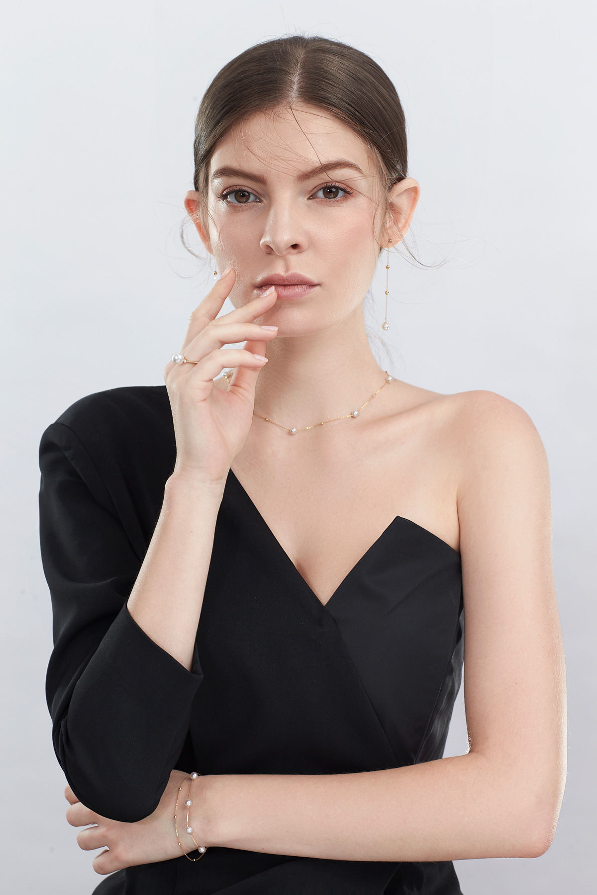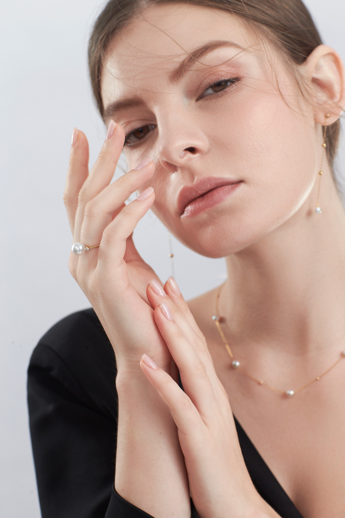 By controlling light and shadow to highlight pearls’ warm texture, this presentation targets the audience for “high-end pearl brand shooting”.